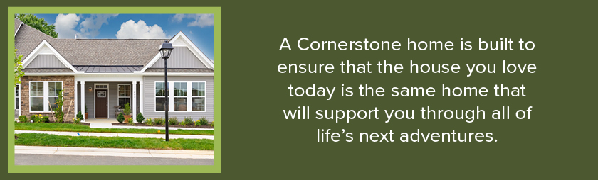 Every Cornerstone home is designed to make life easier, not harder. You’ve likely heard the term “aging in place,” which simply means having the freedom and comfort to live in your own home safely and independently for as long as possible. It’s about ensuring that the home you love today is the same home that will support you through all of life’s next adventures.